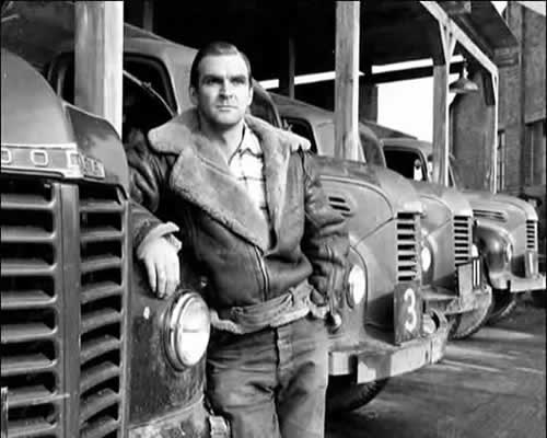 Click photo to view in Full Size  A great shot of a line of 1950's Kew-built Dodge 123 Ballast Tippers. This was a publicity photo to promote a great 1957 film called 'Hell Drivers' directed by the American exile Cy Endfield.