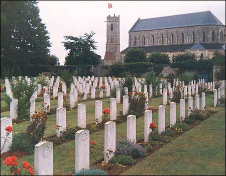 Ranville War Cemetery (7 miles north-east of Caen) lies next to the village churchyard. A great many of the graves are men of the 6th Airborne Division, who were landed by glider or parachute nearby to take vital bridges over the Orne and Caen Canal.